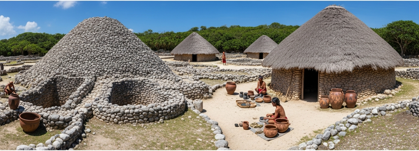 沖縄本島中部に位置する、縄文時代前期から後期にかけての国指定史跡の貝塚です。沖縄の貝塚文化前期の標式遺跡として知られ、特徴的な文様を持つ「荻堂式土器」が発見されました。住居跡や貝層も良好な状態で保存されており、当時の人々の生活様式や九州地方との交流をうかがい知ることができる学術的価値の高い遺跡です。